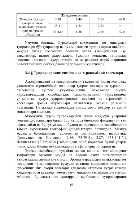 камбағаллашганлиги кузатилди. Эрозия жараёнлари натижасида тоғ