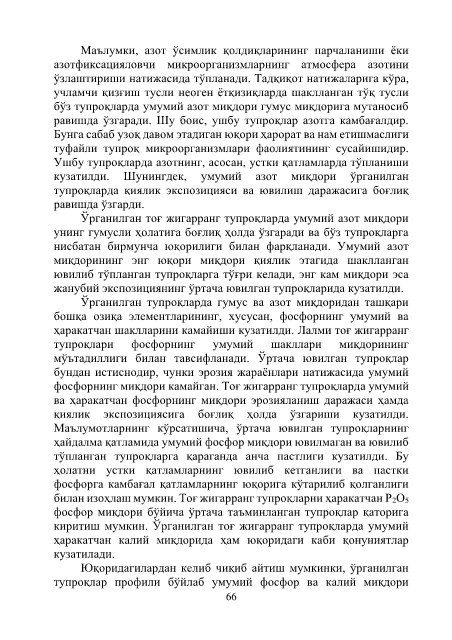 киритиш мумкин. Ўрганилган тоғ жигарранг тупроқларда умумий