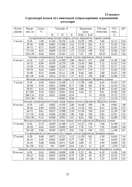 Сурхондарё воҳаси чўл минтақаси тупроқларининг агрокимёвий