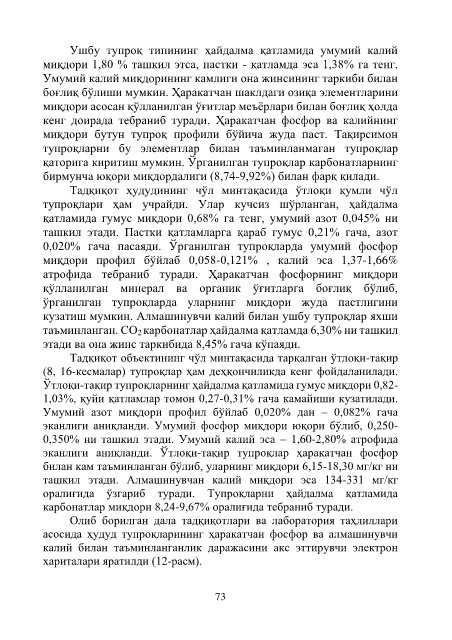 оралиғида ўзгариб туради. Тупроқларни ҳайдалма қатламида