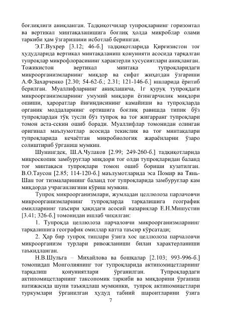тарқалиш қонуниятлари ўрганилган. Тупроқлардаги