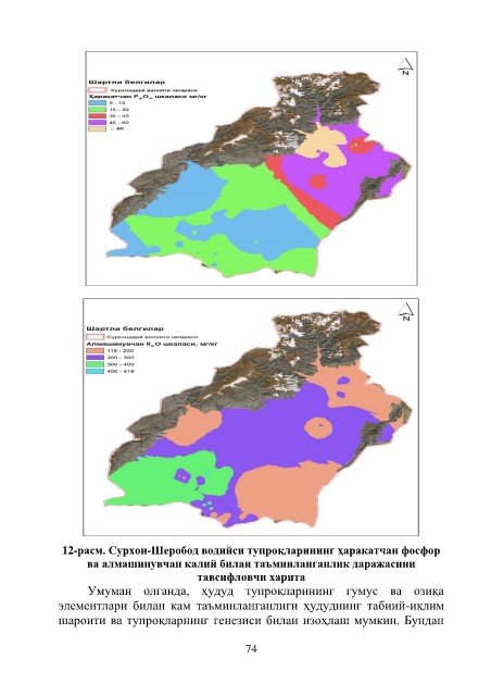 12-расм. Сурхон-Шеробод водийси тупроқларининг ҳаракатчан фосфор