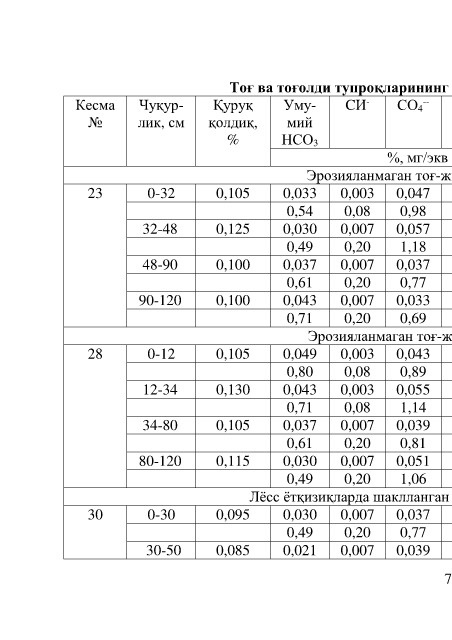Тоғ ва тоғолди тупроқларининг шўрланганлиги бўйича тавсифи