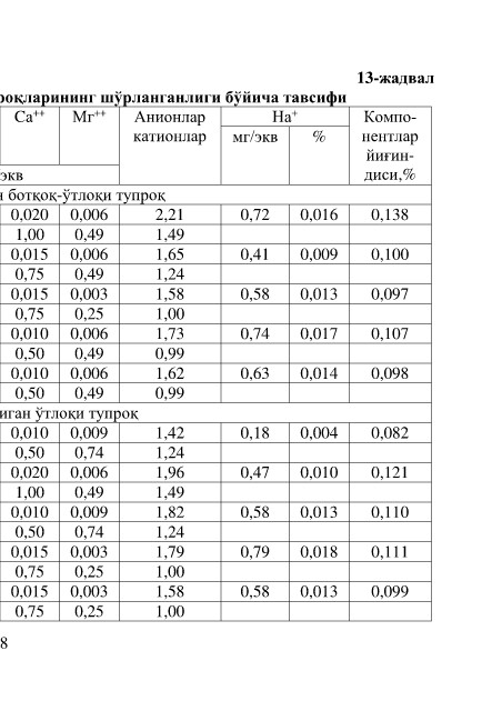 Бўз тупроқлар минтақаси суғориладиган тупроқларининг шўрланганлиги бўйича тавсифи