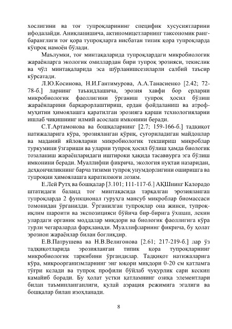 томонидан ўрганилди. Ўрганилган тупроқлар она жинси, тупроқ-