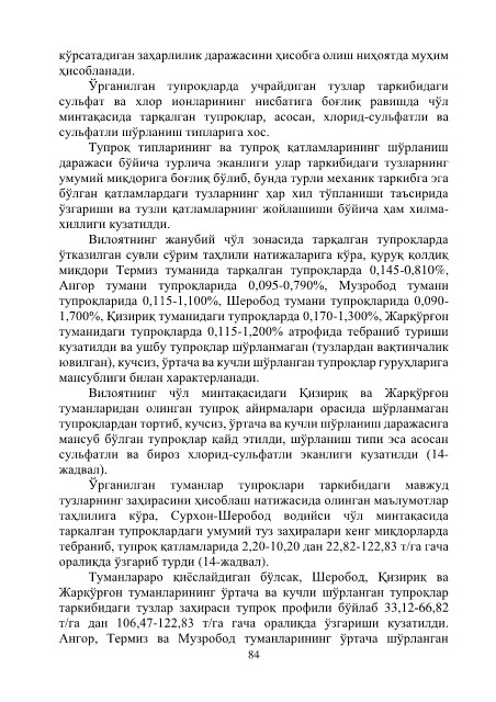 мансуб бўлган тупроқлар қайд этилди, шўрланиш типи эса асосан