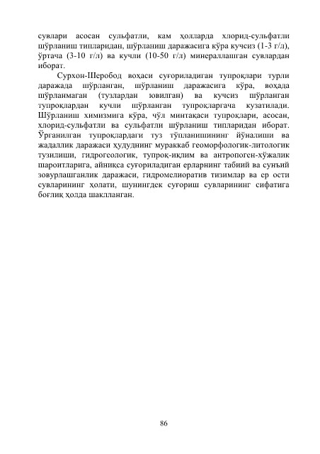 хлорид-сульфатли ва сульфатли шўрланиш типларидан иборат.
