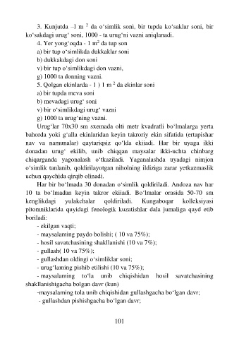 3. Kunjutda –l m da o‘simlik soni, bir tupda ko‘saklar soni, bir