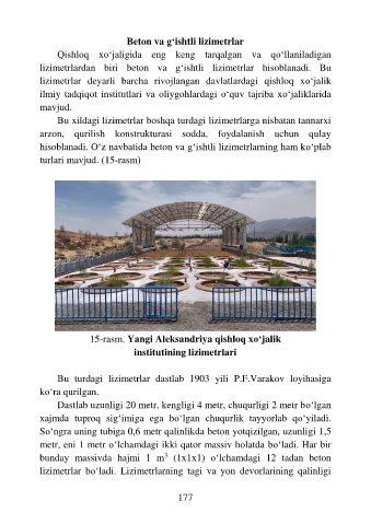 hisoblanadi. O‘z navbatida beton va g‘ishtli lizimetrlarning ham ko‘plab