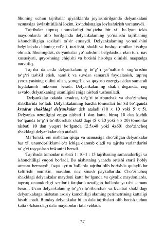 hisoblanadi. Bunday delyankalar bilan dala tajribalari olib borish uchun