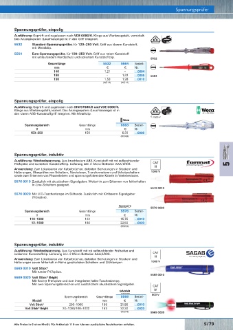 5564 Euro-Spannungsprüfer, für 100–250 Volt. Griff aus rotem Kunststoff