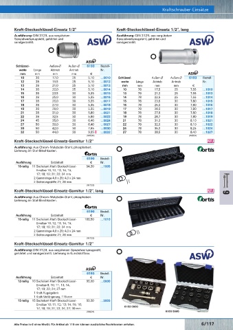 Außen-∅ 6186 Bestell- Kraft-Steckschlüssel-Einsatz-Garnitur 1/2"
