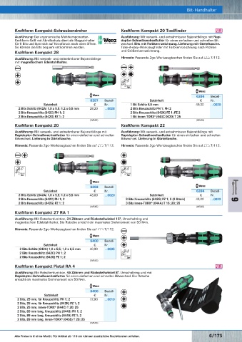 2 Bits Schlitz (642A) 1,0 x 5,5; 1,2 x 6,5 mm 28,20 …0028 2 Bits Kreuzschlitz PH 1; PH 2