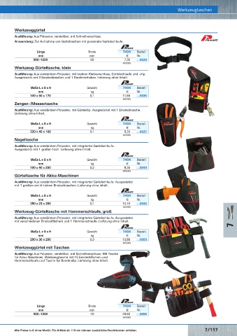 Werkzeug-Gürteltasche Maße L x B x H Gewicht 7404 Bestell-