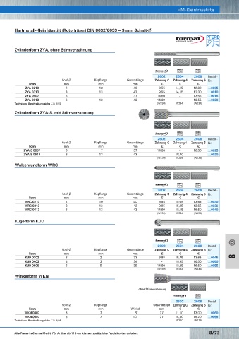 Hartmetall-Kleinfrässtift (Rotorfräser) DIN 8032/8033 – 3 mm Schaft-∅ HM-Kleinfrässtifte