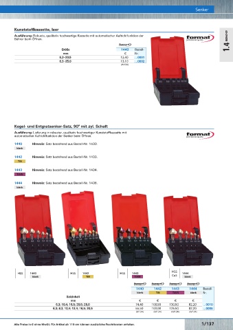 Kegel- und Entgratsenker, 90° mit zyl. Schaft Kunststoffkassette, leer Senker