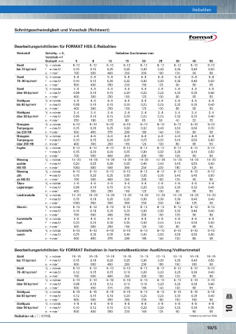Bearbeitungsrichtlinien für FORMAT HSS-E-Reibahlen
