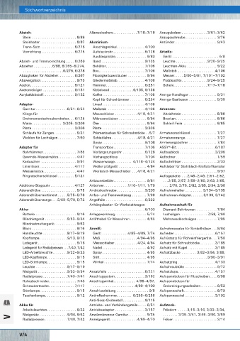 Aderendhülsensortiment .....5/75–5/78 Anfas- und Trennwerkzeug ........ 7/39 Aufnahmen-Adapter .......3/139, 3/142 Automatenbohrer ..... 1/12–1/18, 1/20,