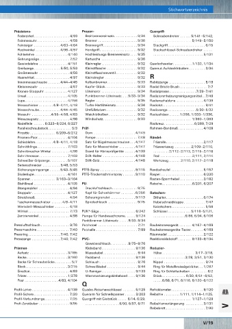 Polygrip -Mehrbereichs-Blindniet ... 9/56 Presszange ................ 7/40, 7/42 PVC- Reaktionsklebstoff ....... 9/133–9/134