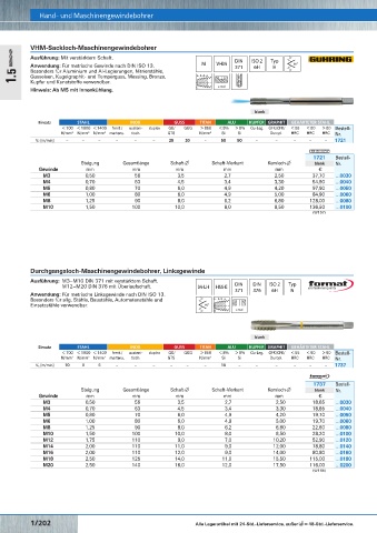 1.5 Besonders für Aluminium und Al-Legierungen, Nitrierstähle, 2–3 Anwendung: Für metrische Linksgewinde nach DIN ISO 13.
