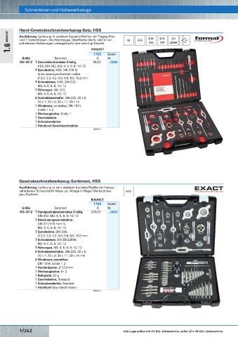 Größe Satzinhalt € Nr. UNF 1/4–1" 9 x Hand-Gewindebohrer, DIN 2184 368,00 …0041