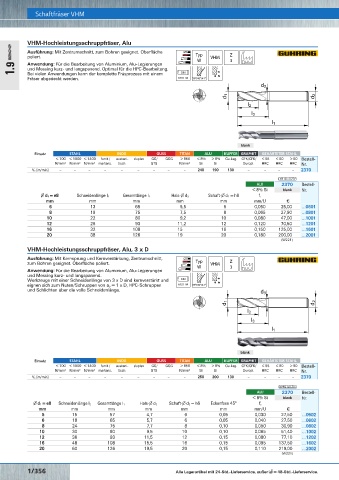 1.9 Anwendung: Für die Bearbeitung von Aluminium, Alu-Legierungen DIN Anwendung: Für die Bearbeitung von Aluminium, Alu-Legierungen