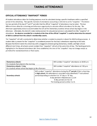period of the school day. This specific moment of attendance accounting is referred to as the “snapshot.” The district