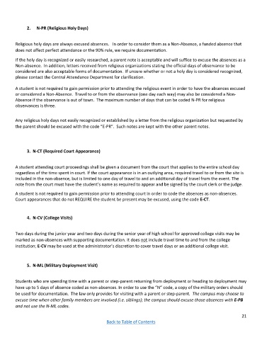 Absence if the observance is out of town. The maximum number of days that can be coded N-PR for religious