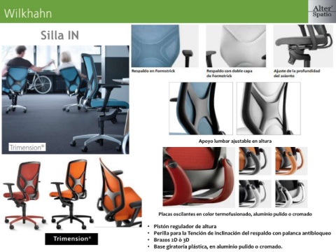 • Perilla para la Tención de inclinación del respaldo con palanca antibloqueo