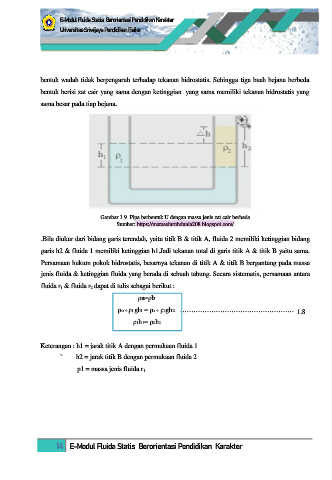 Gambar 1.9. Pipa berbentuk U dengan massa jenis zat cair berbeda