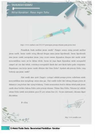 E-Modul Fluida Statis Berorientasi Pendidikan Karakter Universitas Sriwijaya Pendidikan Fisika 26 E-Modul Fluida Statis Berorientasi Pendidikan Karakter