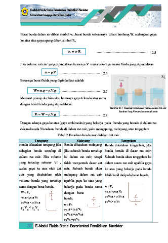 Tabel 2.1keadaan benda saat didalam zat cair
