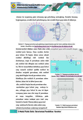 yang aarahnya ke bawah, maka cairan yang Gambar 3.4. Bukti tegangan permukaan