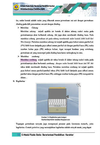 permukaannya akan berbentuk cekung. Air juga akan membasahi dinding kaca. Pada