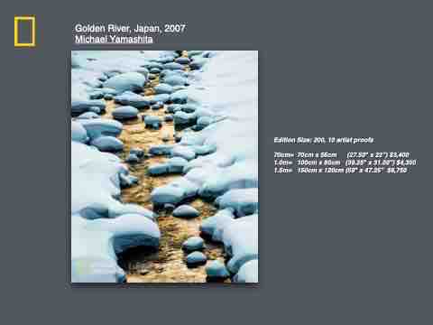 Golden River, Japan, 2007 Michael Yamashita Edition Size: 200, 10 artist proofs 70cm= 70cm x 56cm (27.50" x 22”) $3,400 1.0m= 100cm x 80cm (39.25" x 31.50”) $4,300 1.5m= 150cm x 120cm (59" x 47.25” $6,750