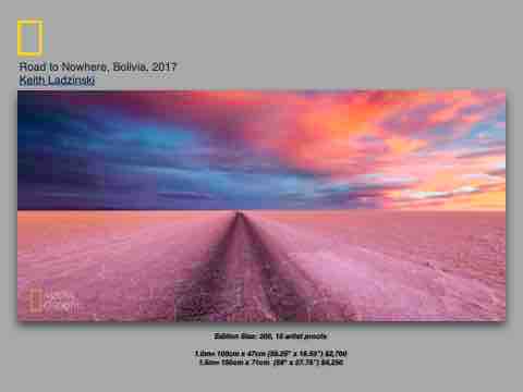 Road to Nowhere, Bolivia, 2017 Keith Ladzinski Edition Size: 200, 10 artist proofs 1.0m= 100cm x 47cm (39.25" x 18.50”) $2,700 1.5m= 150cm x 71cm (59" x 27.75”) $4,250