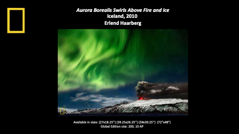 Aurora Borealis Swirls Above Fire and Ice Iceland, 2010 Erlend Haarberg Available in sizes: (27x18.25’’) (39.25x26.25’’) (59x39.25’’) (72"x48") Global Edition size: 200, 10 AP