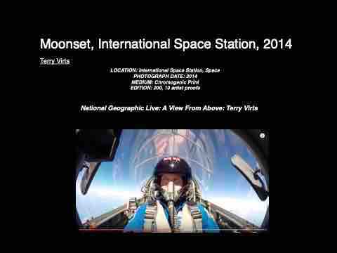 Moonset, International Space Station, 2014 Terry Virts LOCATION: International Space Station, Space PHOTOGRAPH DATE: 2014 MEDIUM: Chromogenic Print EDITION: 200, 10 artist proofs National Geographic Live: A View From Above: Terry Virts