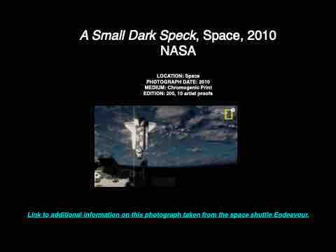 A Small Dark Speck, Space, 2010 NASA LOCATION: Space PHOTOGRAPH DATE: 2010 MEDIUM: Chromogenic Print EDITION: 200, 10 artist proofs Link to additional information on this photograph taken from the space shuttle Endeavour.