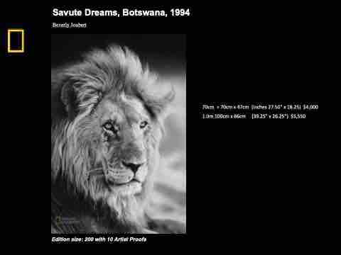 Savute Dreams, Botswana, 1994 Beverly Joubert Edition size: 200 with 10 Artist Proofs 70cm = 70cm x 47cm (inches 27.50" x 18.25) $4,000 1.0m 100cm x 66cm (39.25" x 26.25") $5,550 4400 5550