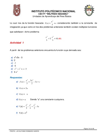 Lo cual nos da la función buscada: (f ) x = + c considerando también a la constante de