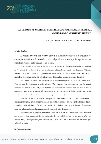 Pensamos que o prejuízo é evidente, uma vez que tal ato é eivado de vício insanável