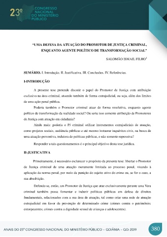 A presente tese pretende discutir o papel do Promotor de Justiça com atribuição