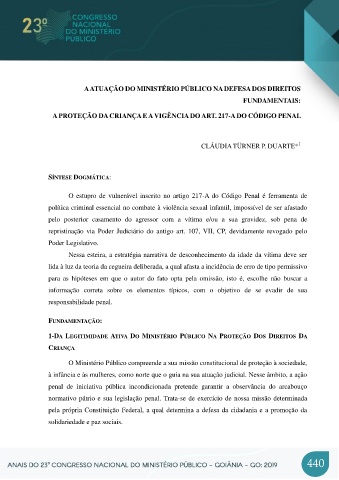 A PROTEÇÃO DA CRIANÇA E A VIGÊNCIA DO ART. 217-A DO CÓDIGO PENAL