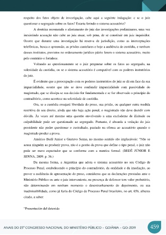 Da mesma forma, a Argentina que adota o sistema acusatório no seu Código de