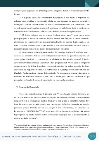 outros  países,  implicará  necessariamente  na  admissão  da  investigação  criminal  defensiva