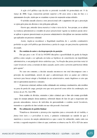 proferido na ação civil pública que determinou a perda do cargo, eis que prescrita a pretensão