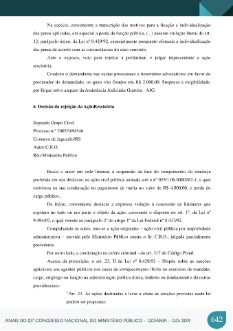administrativa  –  movida pelo  Ministério  Público contra o Sr. C.R.O., julgada parcialmente