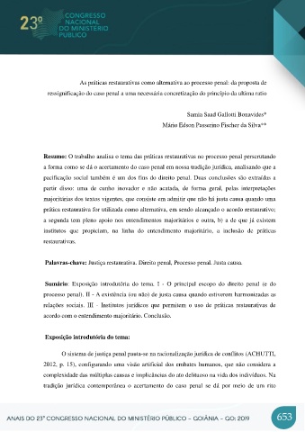 Palavras-chave: Justiça restaurativa. Direito penal, Processo penal. Justa causa.