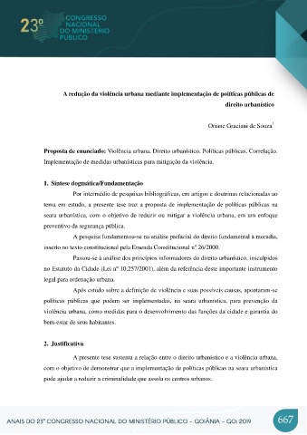 Proposta de enunciado: Violência urbana. Direito urbanístico. Políticas públicas. Correlação.